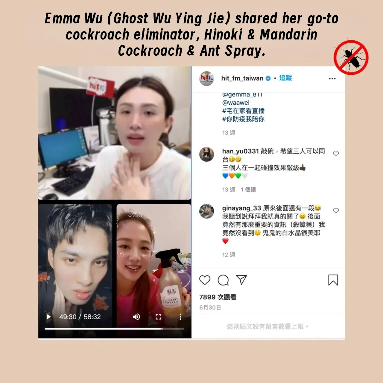 Emma Wu (Ghost Wu Ying Jie) shared her go-to cockroach eliminator, Hinoki Life Natural Cockroach & Ant Repellent Spray,